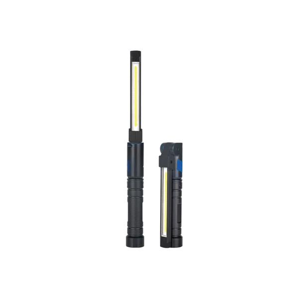 Lampe d'inspection pliable King Tony : 800 lumens, base magnétique, tête inclinable, batterie Li-ion, idéale pour espaces restreints. Certifiée CE, RoHS.