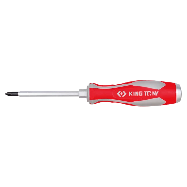 Tournevis Phillips® King Tony : performance et durabilité avec lame SNCM+V, poignée bi-matière, finition chromée, norme DIN ISO 8764. Idéal pour pros exigeants.